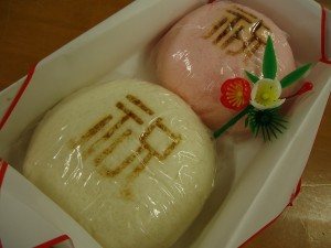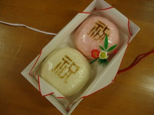 施主様からこんなに大きな紅白まんじゅうを頂きました!!!!