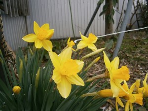 会社の水仙が、ようやく咲きました。