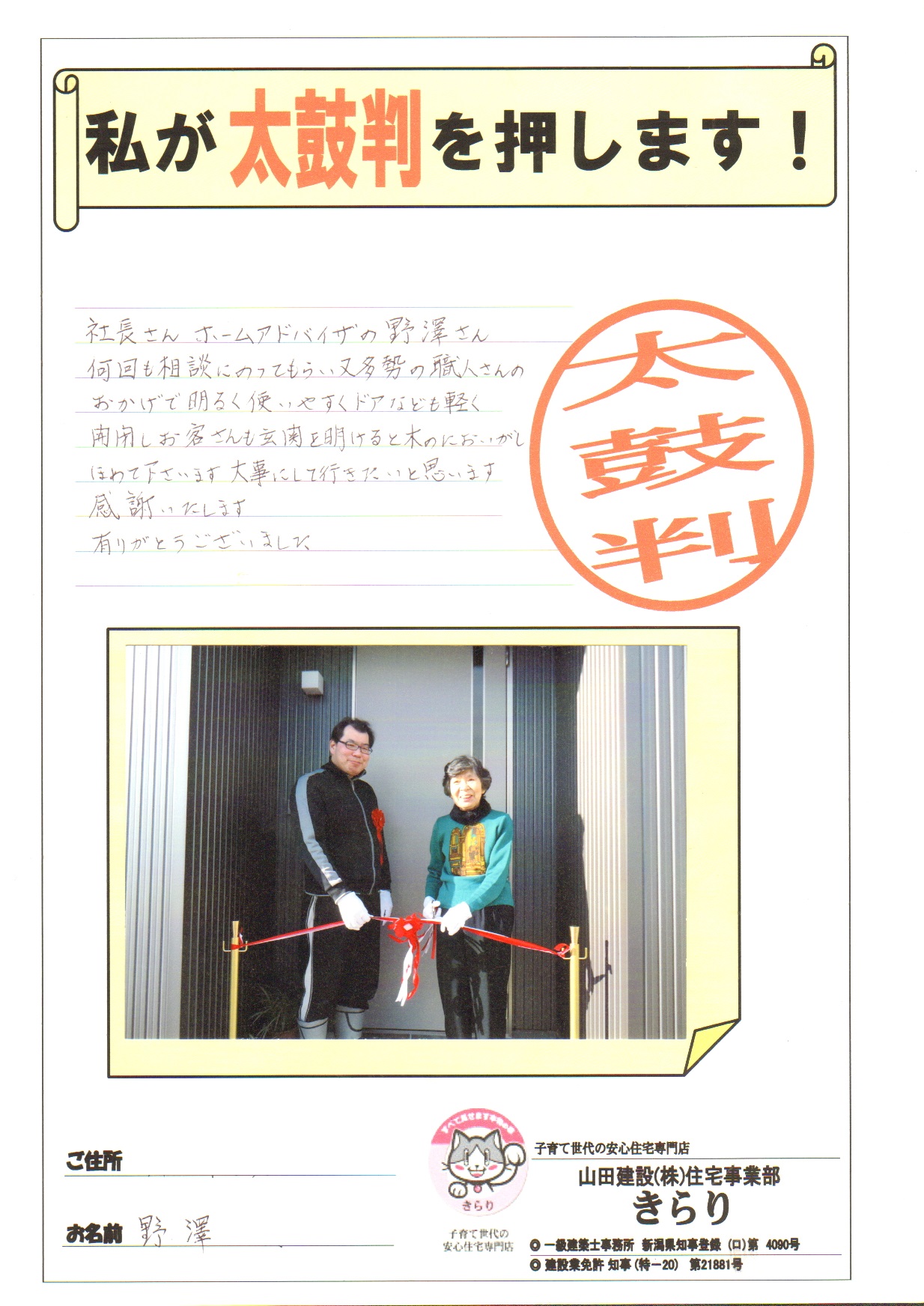 社長さん、ホームアドバイザーの野澤さん